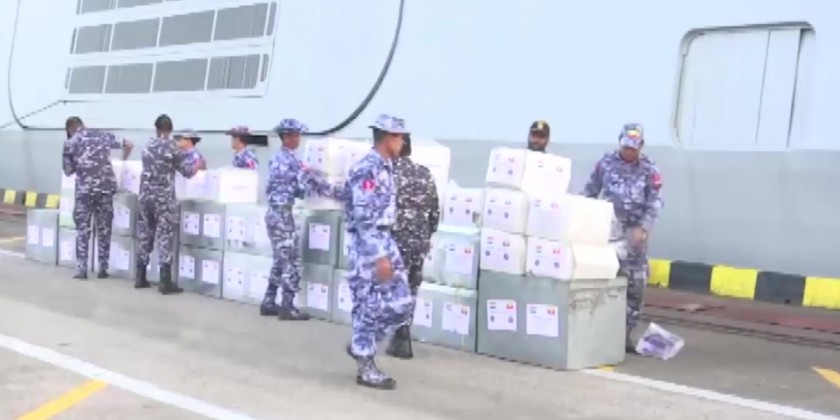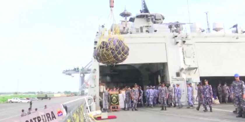 INS Satpura (F-48) of India Navy carrying about 21 tonnes of disaster relief items donated by India for conducting rescue operations and rehabilitation works at the flood affected areas including Nay Pyi Taw Council Area arrived at Thilawa Port on September 17th.