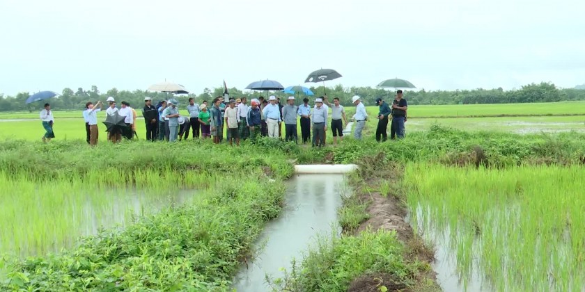 During the inspection, the Chief Minister inspected the flood affected 100 acres of paddy plantations and the condition of monsoon paddy plantations in in Madain Village of Wine Maw Township.