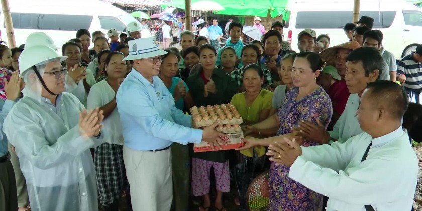 He also coordinated requirements of the local farmers. Next, the Chief Minister visited the relief camp in Ward No.5 of Wine Maw Township and provided tuna cans, instant noodle packages, eggs, toothbrush and toothpaste and exercises books to flood victims.