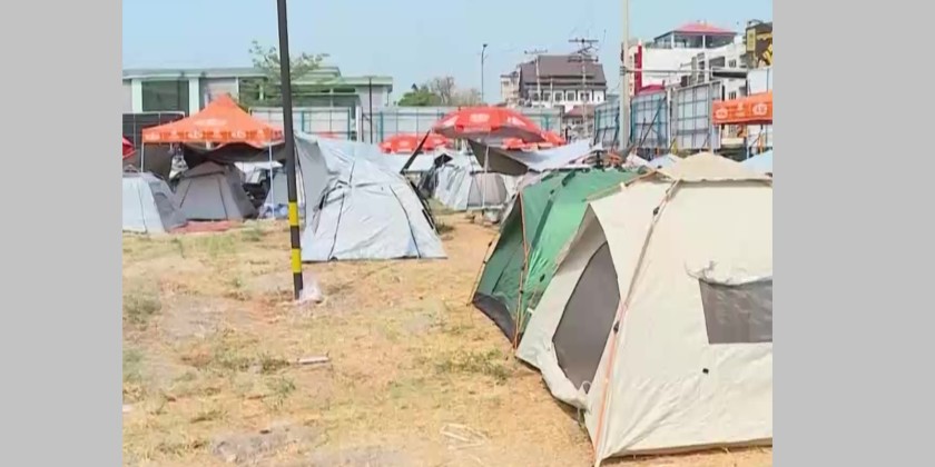 Wint Wah Moe, said " Despite the buildings have not collapsed, there are several cracks and thus we cannot stay inside. So, we take shelter at the temporary tents.  "