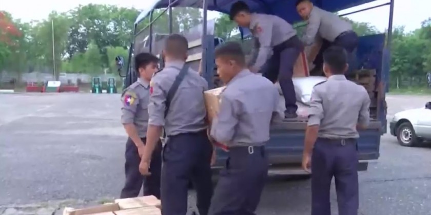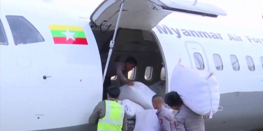 Military personnel and departmental staff participated in the rescue teams to perform the rescue and rehabilitation tasks at the disaster hit areas. Besides, foodstuff, relief materials donated by the Tadmadaw (Army, Navy and Air) families and well-wishers and supplies provided by the National Disaster Management Committee are being transported to the affected areas by Tadmadaw aircrafts and navy vessels.