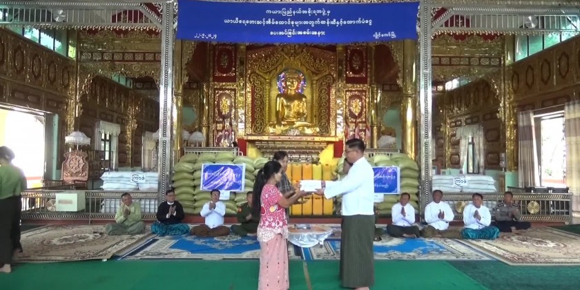 During the ceremony, the Kayah state government and Disaster Management Department donated over 3.8 million kyat worth of rice bags, edible oil and other essential food items to 507 flood-affected households.