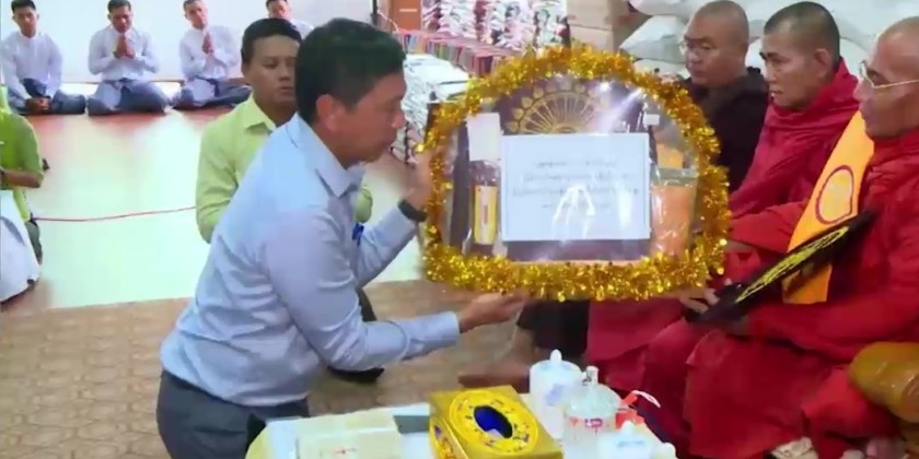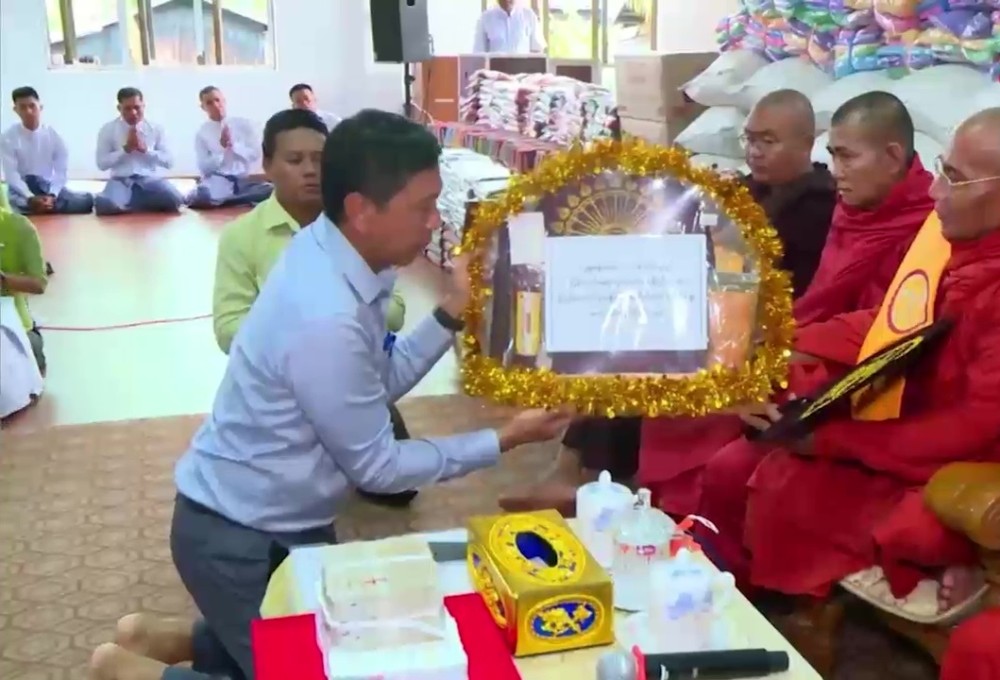 Vice-Chairman of the National Disaster Management Committee, Union Minister for Social Welfare, Relief and Resettlement Dr. Soe Win, attended the ceremony together with the Mon State Chief Minister and officials. First Union Minister and the Chief Minister paid homage to presiding Sayadaw of KyaikHteeSaung SandawShin Pagoda Monastery and donated offertories.