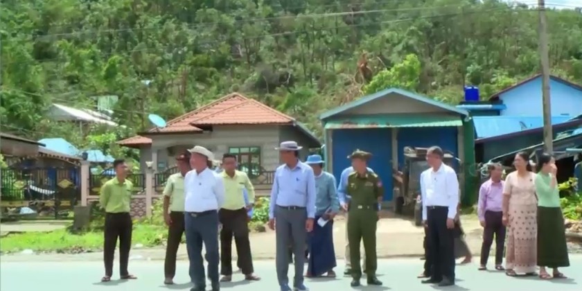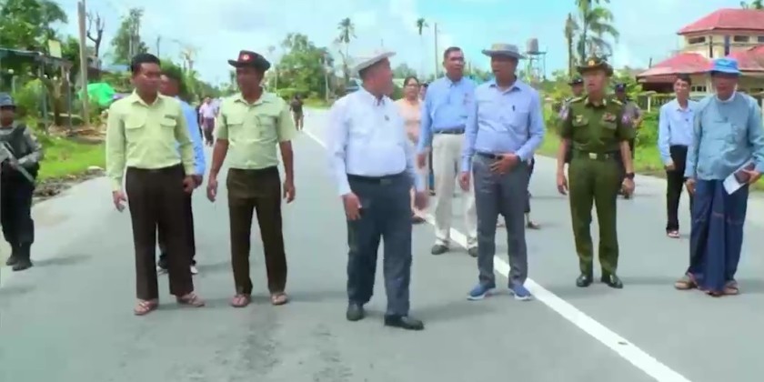 Next, the Union Minister and the Chief Minister observed the wind-affected religious buildings and residential areas in Paung where they coordinated the necessaries for reconstruction. In the afternoon, the Union Minister attended a ceremony to provide cash assistance to temporarily displaced persons in Mon State due to terrorist incidents.