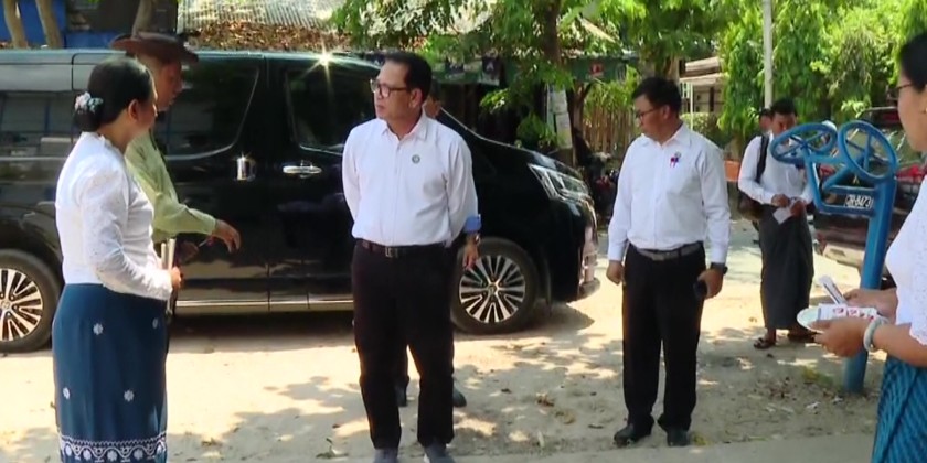 On Friday, Union Minister for Information U Maung Maung Ohn visited the office of Information and Public Relations Department in Lewe Township to assess the earthquake damaged areas.