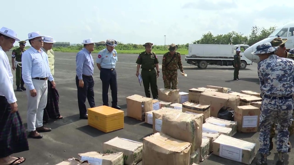 The relief supplies provided by the families of the Commander-in-Chief (Army) Office arrived at Myitkyina Air Base on 4th June, and it was transported to PutaO. During the handover ceremony, Chief Minister U Khet Htein Nan explained the government’s efforts for ensuring peace and stability in the state, achieving development and socio-economic progress of people, along with food sufficiency.