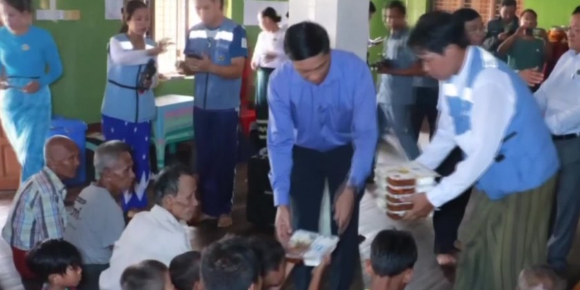 There, they provided over 4.7 million kyats worth of rice and noodles for the displaced residents affected by Typhoon Yagi from Pobbathiri, Zeyathiri, and Pyinmana Townships in Nay Pyi Taw and gave words of comfort.