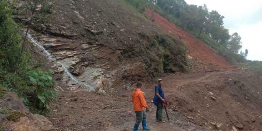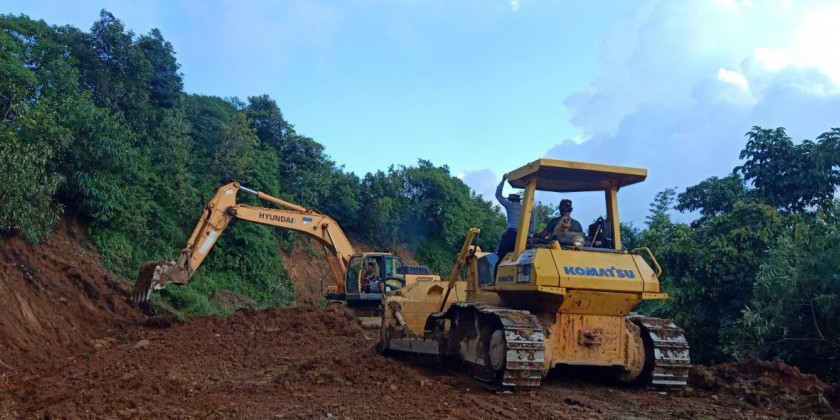 On October 11th, Chairman of the Pa-O Self-Administered Zone Administration Body U Khun Ye Htwe and relevant officials conducted a field inspection to assess the landslides and debris clearance. During this assessment, they oversaw the mechanical removal of debris along 1.5 miles of the PahKhat-PanKaLar road, 2 miles of the NatSin-PanKalar road, and 1.5 miles of the KyaukKaChar-NatSin-PanKalar road.