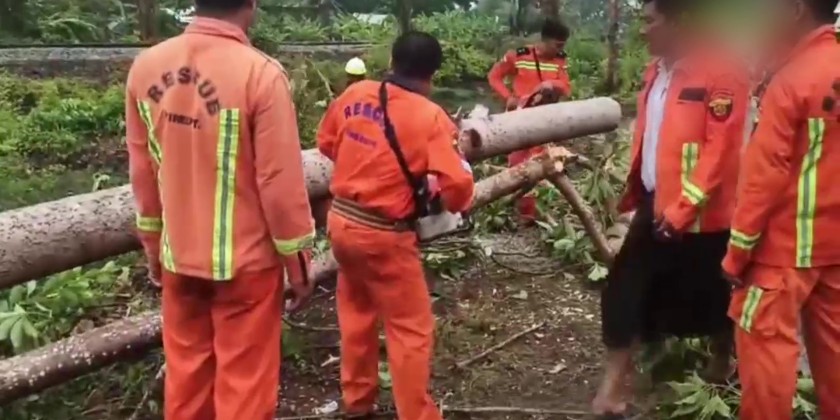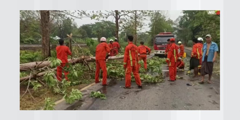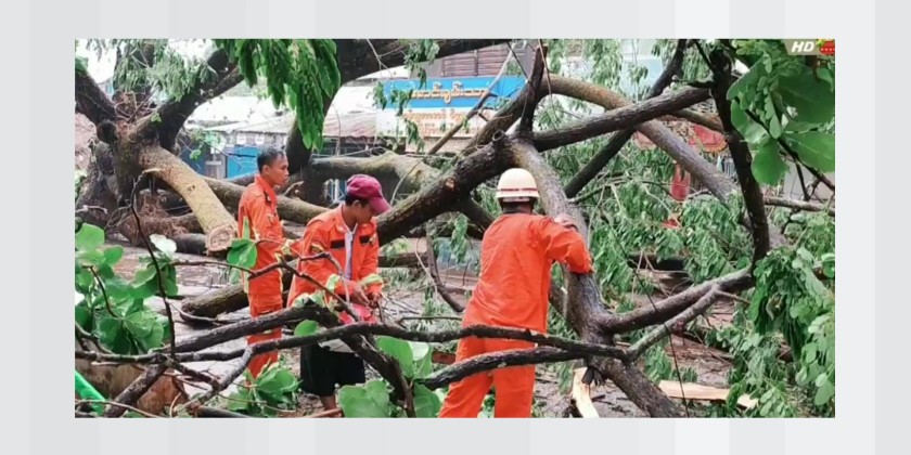 The strong wind knocked down trees and damaged houses, monasteries, schools, and a rural clinic. Some buildings were completely destroyed. Tatmadawmen, police members, firefighters, and social organizations are helping remove debris, clear fallen trees, and assist affected residents.