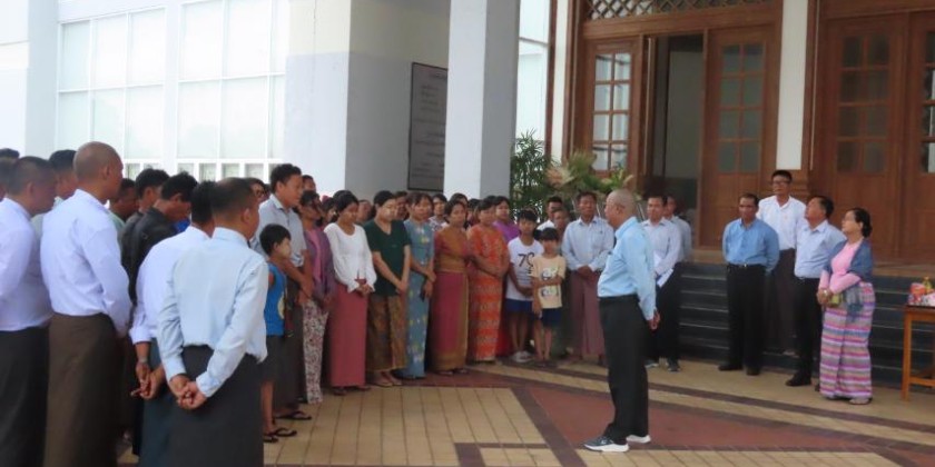 On 19th April, Union Minister for Religious Affairs and Culture U Tin Oo Lwin accompanied by Deputy Ministers and concerned officials visited the temporary shelters opened at Tabaung Ground in Pobbathiri Township, National Museum (Nay Pyi Taw), Office No.35 of the Ministry of Religious Affairs and Culture and Yan Aung Myin Shwe Lat Hla pagoda in Dekkinathiri Township where the earthquake affected staff under the ministry are being accommodated.