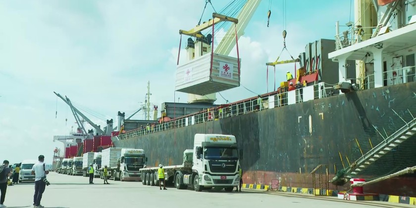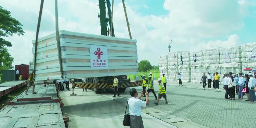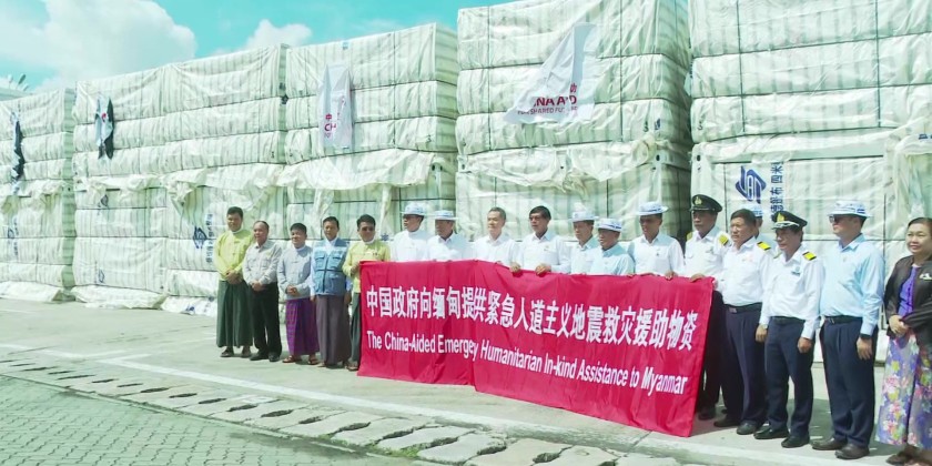 The relief supplies donated by China arrived Yangon’s Thilawa MITT Port on 2nd May. This is the 11th batch of relief materials from China to assist the rehabilitation efforts in the affected areas by the severe Mandalay earthquake. Yangon Region Chief Minister U Soe Thein accepted the 340 Modular (Prefabricated) Houses, and oversaw the unloading of the relief items which will be later transported to the quake-hit areas by train.