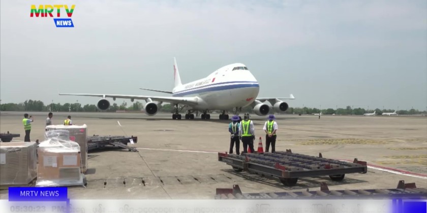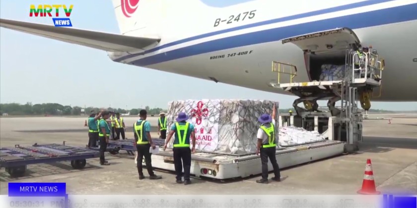 To accelerate the rescue and relief measures in the aforementioned areas, relief flight carrying 3,288 kg of medicine and respiratory equipment from the People’s Republic of China arrived at Yangon International Airport on 6th April. The relief items were transported to Nay Pyi Taw under the supervision of Yangon Region Government.