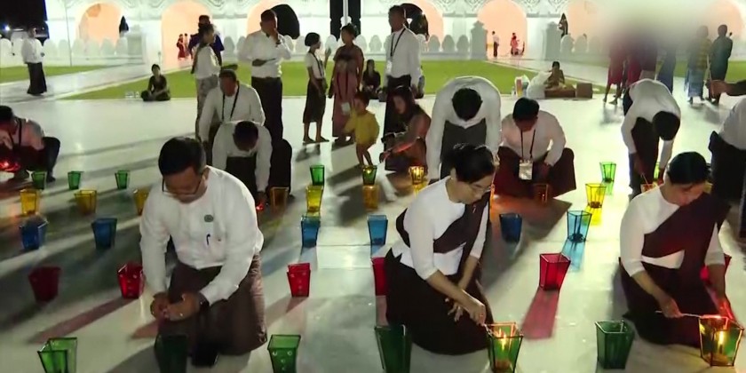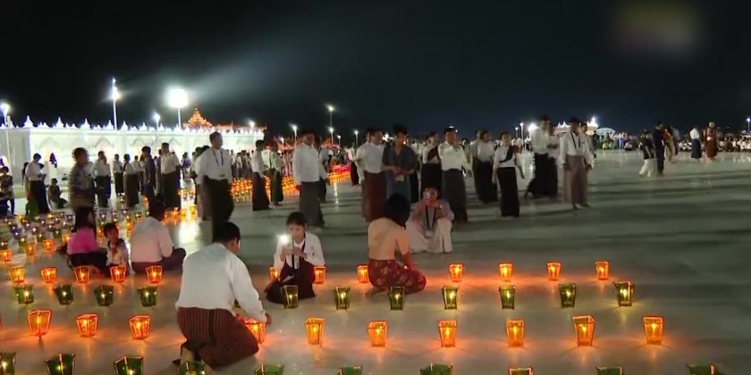 A ceremony to light 3,600 oil lamps dedicating to the Lord Buddha took place on the platform of Maravijaya Buddha Image on the evening of Thadingyut full moon day. In the event organized by Nay Pyi Taw Council, Nay Pyi Taw Council Chairman U Than Tun Oo and wife, council members and officials together with pilgrims lit oil lights and released hot-air balloons.