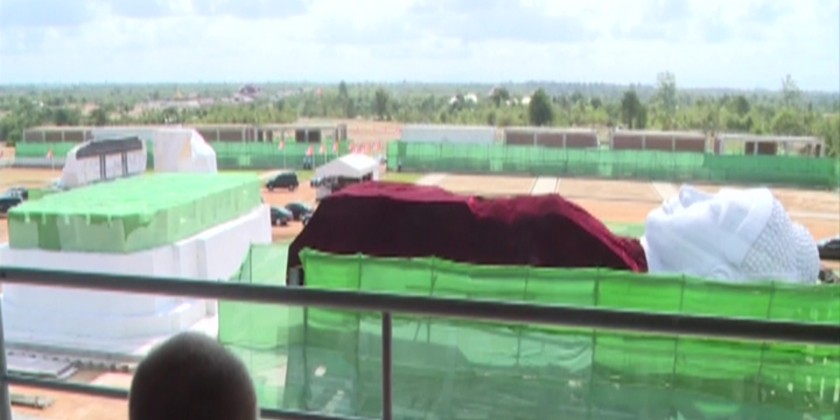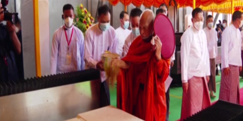 The ceremony began with reciting Namotasa three times and continued with religious norms. Bhamo Sayadaw and Sitagu Sayadaw pressed the buttons to inaugurate the machines that will curve the Pitaka stone inscriptions.