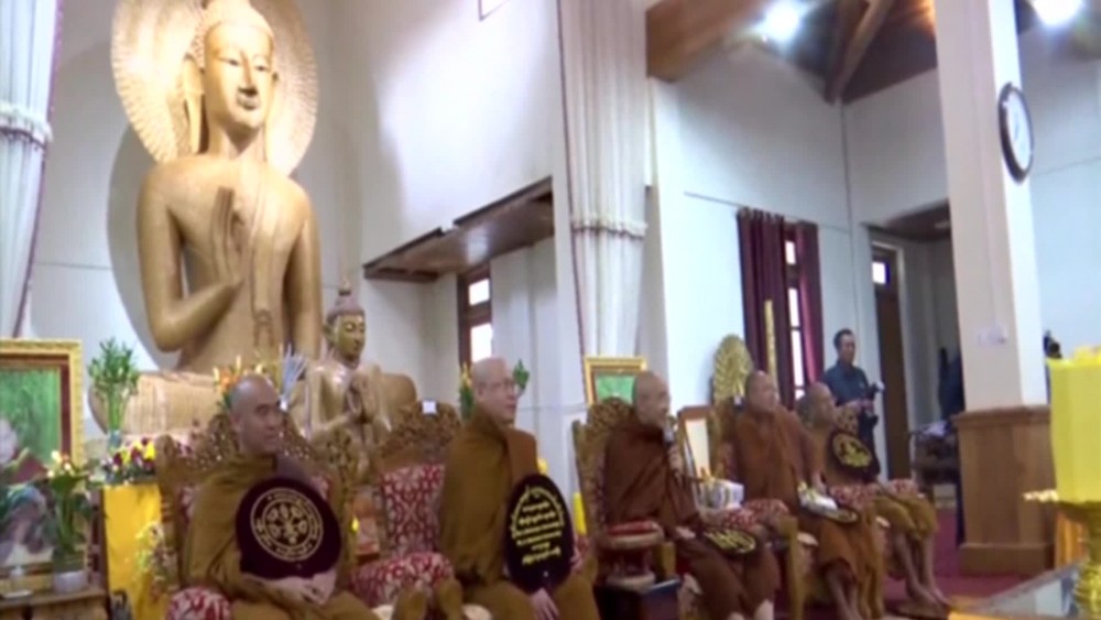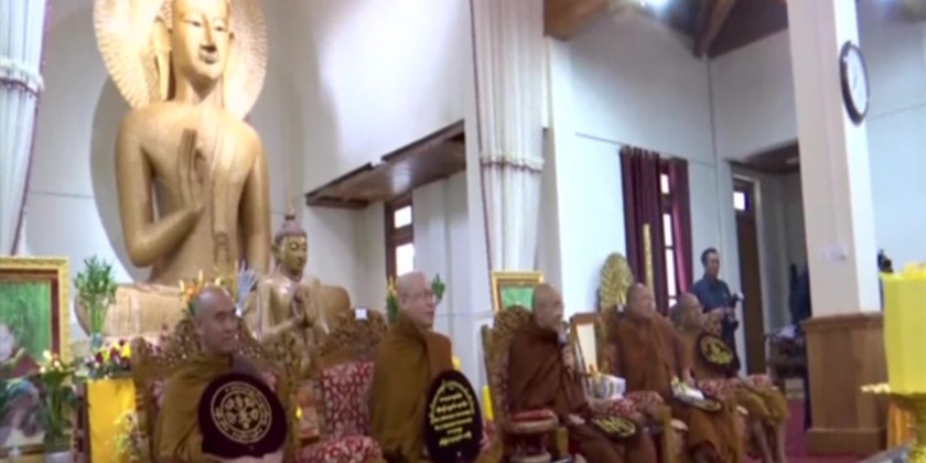 There, the Senior General and party paid their respects to the Oxford Sayadaw and offered the Tripitaka texts in Pali and Romanize Language, replica of the Maravijaya Buddha Image and other offertories to the Sayadaw. Then, the Sayadaw gave Dhamma books to the Senior General and party. And, they shared the merits gained. During the visit, the Senior General and wife planted mahogany trees and members of the Sangha recited sermons.