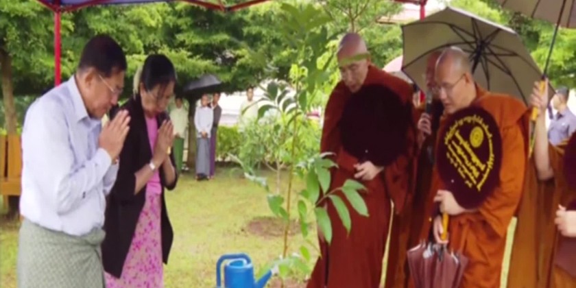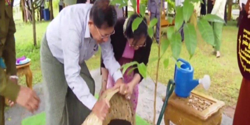 And, they shared the merits gained. During the visit, the Senior General and wife planted mahogany trees and members of the Sangha recited sermons.Chairman of the State Administration Council Prime Minister Senior General Min Aung Hlaing and wife Daw Kyu Kyu Hla accompanied by concerned officials visited the Shan State Buddhist University in PanTin Village-tract of Taunggyi Township on Sunday afternoon.