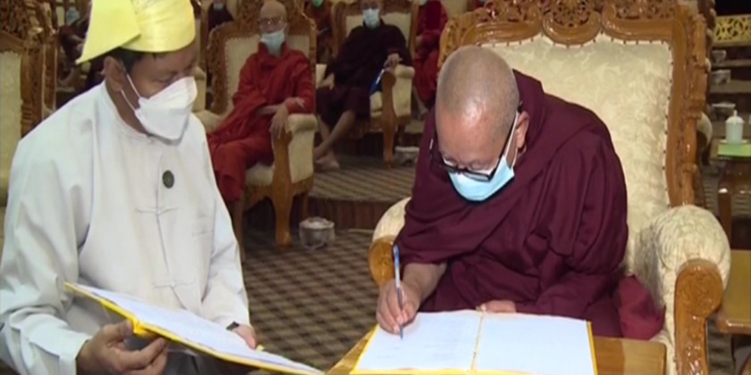 Fifteen Ovadacariya Sayadaws, Chairman Sayadaw, Secretary Sayadaw, and a representative each from region/state and Ganas signed the substitutions, decisions, confirmations, and records made at the third and fourth meetings of the 8th State Central Working Committee of the Sangha recorded in the Religious History Book.