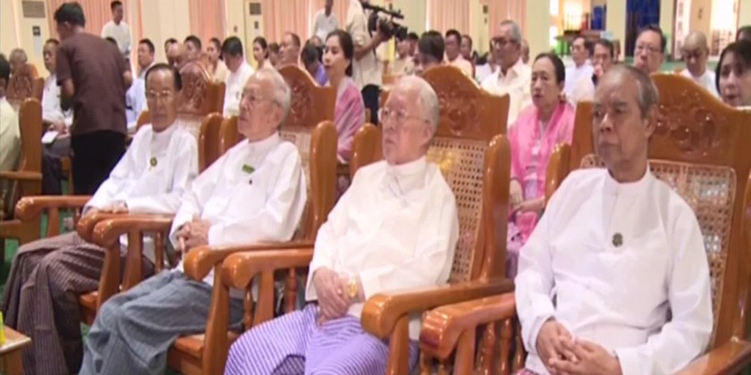 Union Minister for Religious Affairs and Culture U Tin Oo Lwin and many other officials attended the cash donation ceremony for printing 51 copies of Tripitaka, Dhamma Sariya and Pahtama Pyan text books organized by the Dhamma Thabin Organizing Committee at the Ahbidhamma Yadanar Gara Abhidharma Beikman in Yangon on Tuesday.