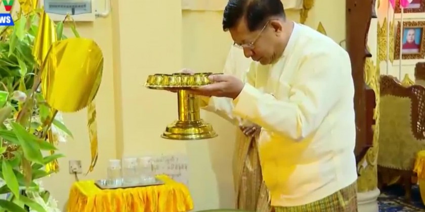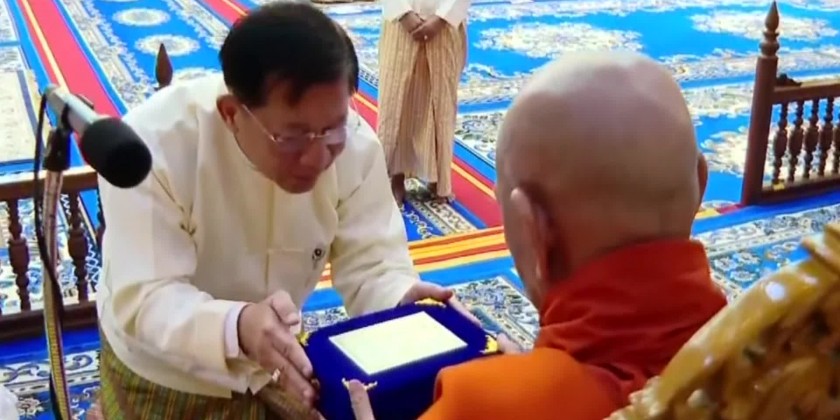 The event was attended by Council Chairman and Prime Minister, Senior General Min Aung Hlaing. Prior to the ceremony, the Prime Minister paid homage to the Buddha Image in the VijayaMingalaDhammaThabin and made offerings of an emerald rice bowl, fruit, flowers, and water.