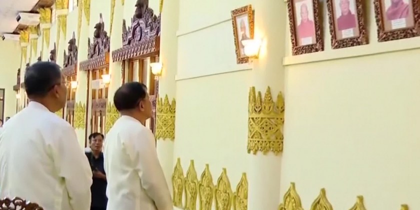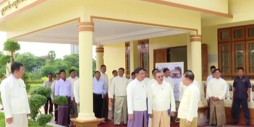 Following the ceremony, the Prime Minister and party inspected the religious edifices at ThiriMingalaKaba Aye Hill, hostels providing temporary shelter to the State OvadaCeriyaSayadaws and State Central Working Committee for Sangha Sayadaws during their visits, and the upgrading of roads at HanthaThiri Hill.