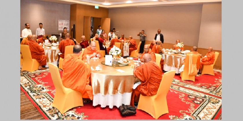 The Sayadawgyis were welcomed by Abhidhaja Maha Rattha Guru Sitagu Sayadaw Bhaddanta Nyanissara and concerned officials. Then, the officials offered day meals to the Sayadaws.