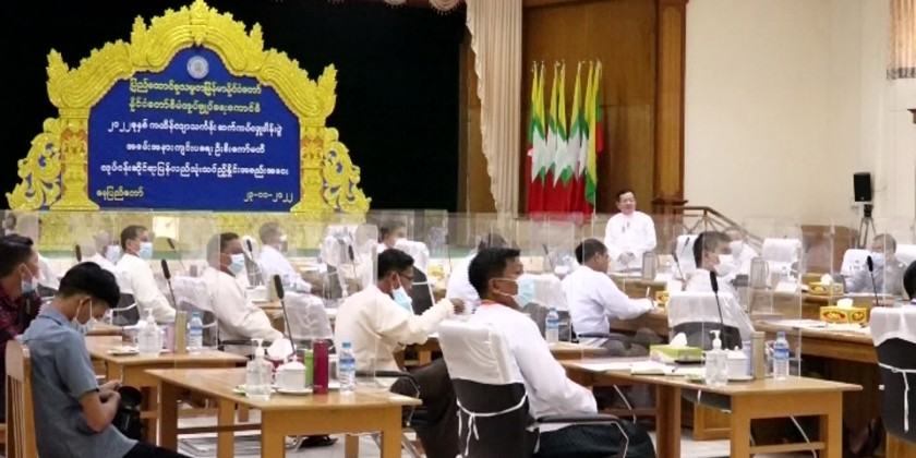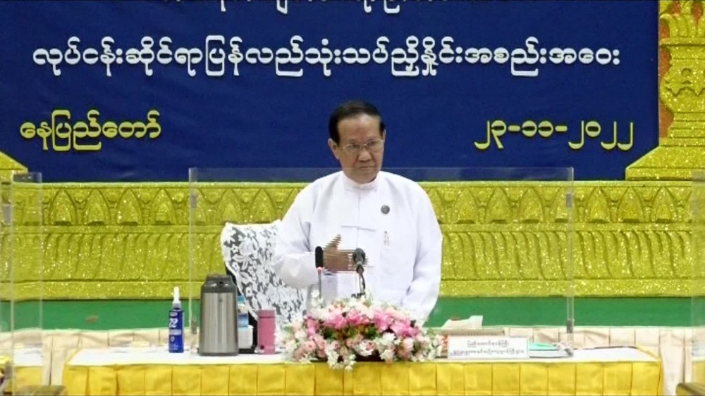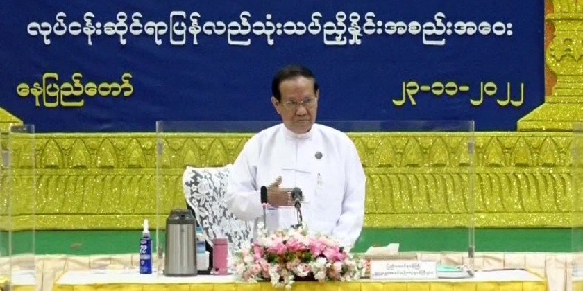Chairman of the Leading Committee on Organizing the Kathina Robe Offering Ceremony for 2021 of the State Administration Council Union Minister for Religious Affairs and Culture U Ko Ko addressed a meeting to review the previous Kathina Robe Offering Ceremony.