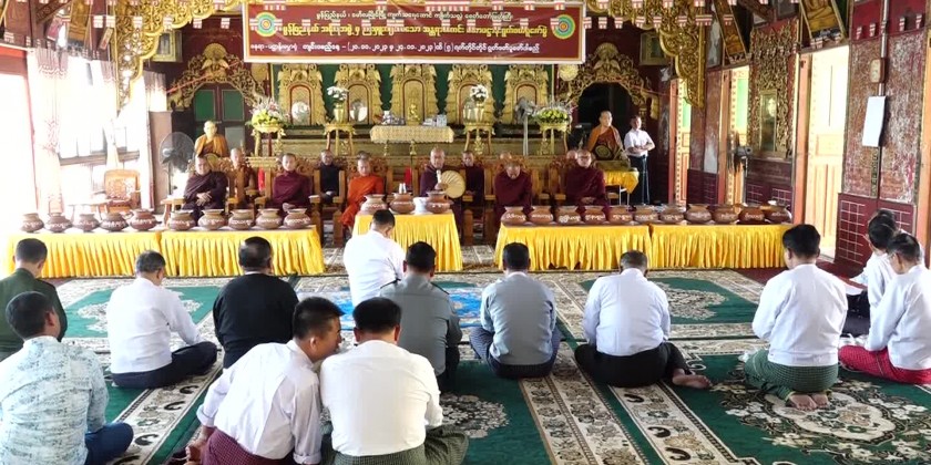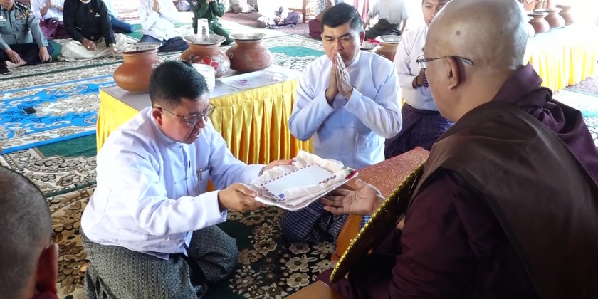 Next, Mon State Chief Minister, state ministers and officials offered the offertories to the Sayadaw and monks and the ceremony was concluded by reciting Buddha Sasanan Ciram Titthatu after sharing the merits gained.