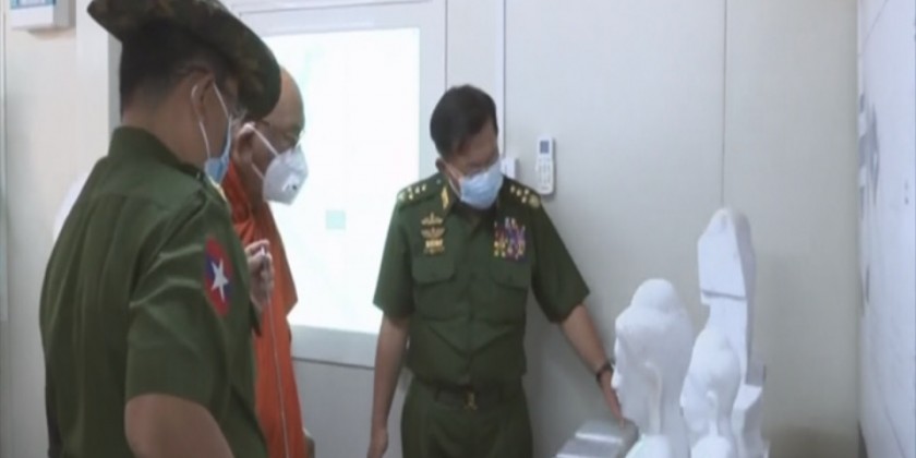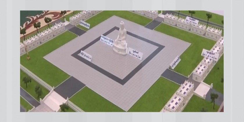 The sitting Buddha image will be created with 32 large characters of the Lord Buddha and 80 small ones in the Bhumi Phassa Mudra. Other religious edifices will be built and decorated with Myanmar artistic works in the Yadanabon era. Upon completion, the Buddha image will be 63 feet high and the throne 18 feet high. Currently, part-1 and part-2 of the throne have been positioned with efforts to carve the remaining parts.