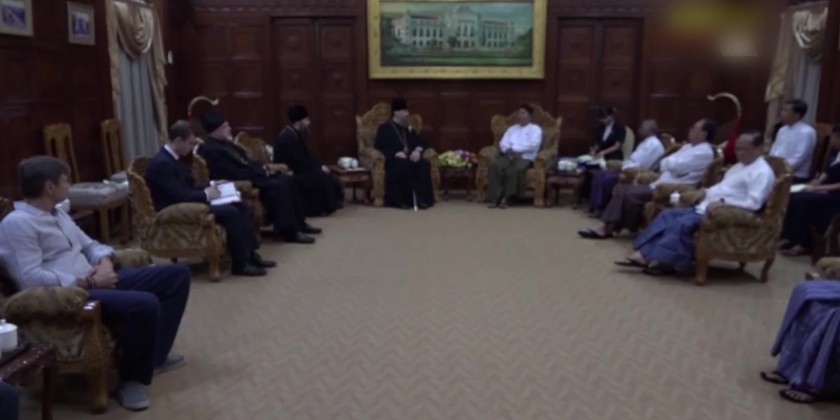 Yangon Mayor U Bo Htay received a delegation led by Russian Orthodox Archbishop His Eminence Sergiy of Metropolitan of South-East Asia.