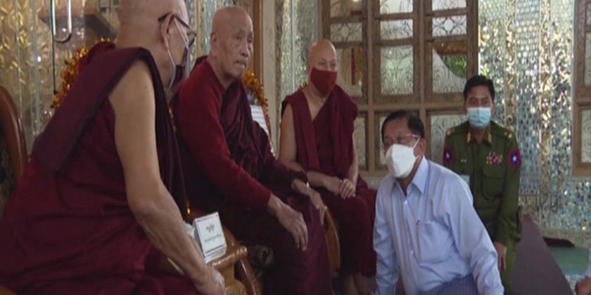 Later the day, the Senior General paid homage to the Sutaungpyae Pagoda on Mandalay Hill and donated offertories and cash. There, he also called for maintenance before signing in the guests' book.
