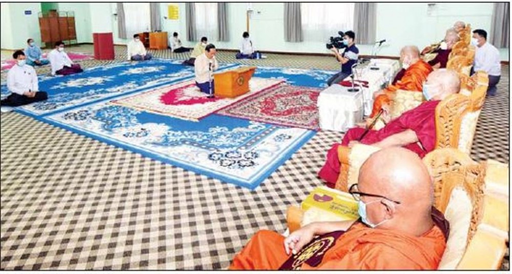 Union Minister for Religious Affairs and Culture U Ko Ko paid homage to State Sangha Maha Nayaka Committee Chairman Sayadaw Dr Bhaddanta Kumara Bhivamsa, Dr Candima Bhivamsa and the State Sangha Maha Nayaka Committee members Sayadaws at the Maha Nayaka Hall on Thiri Mingalar Kaba Aye Hill on Friday.