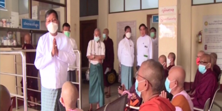 Union Minister for Religious Affairs and Culture U Tin Oo Lwin together with officials visited Jivitadana Sangha Hospital in Yangon on Tuesday.