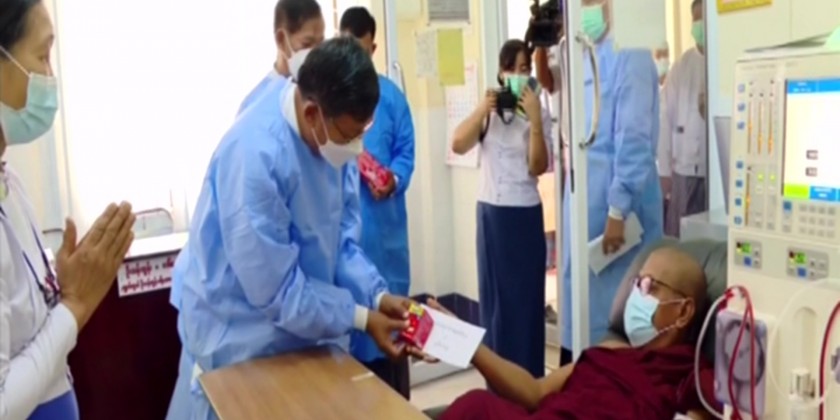 They then paid homage to member of the State Maha Nayaka Committee Presiding Sayadaw of Wah Yon Taw Sasana Pala monastery Dr Baddhanta Withuta Bhivamsa who is receiving medical treatment at the Asia Royal Hospital in San Chaung Township and asked about health conduction of the Sayadaw.