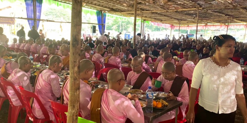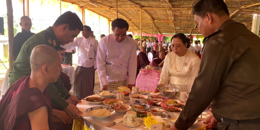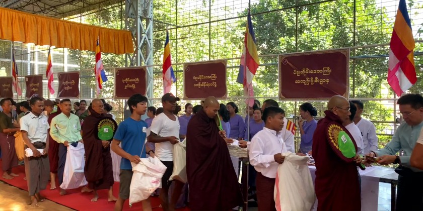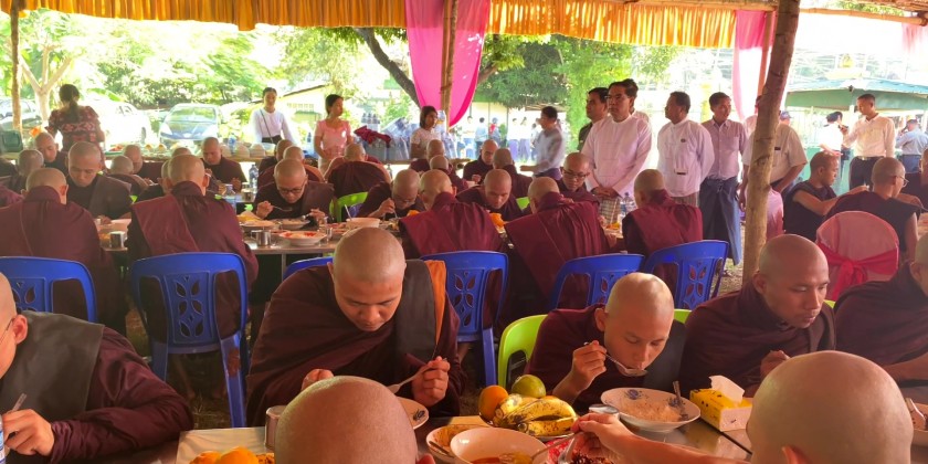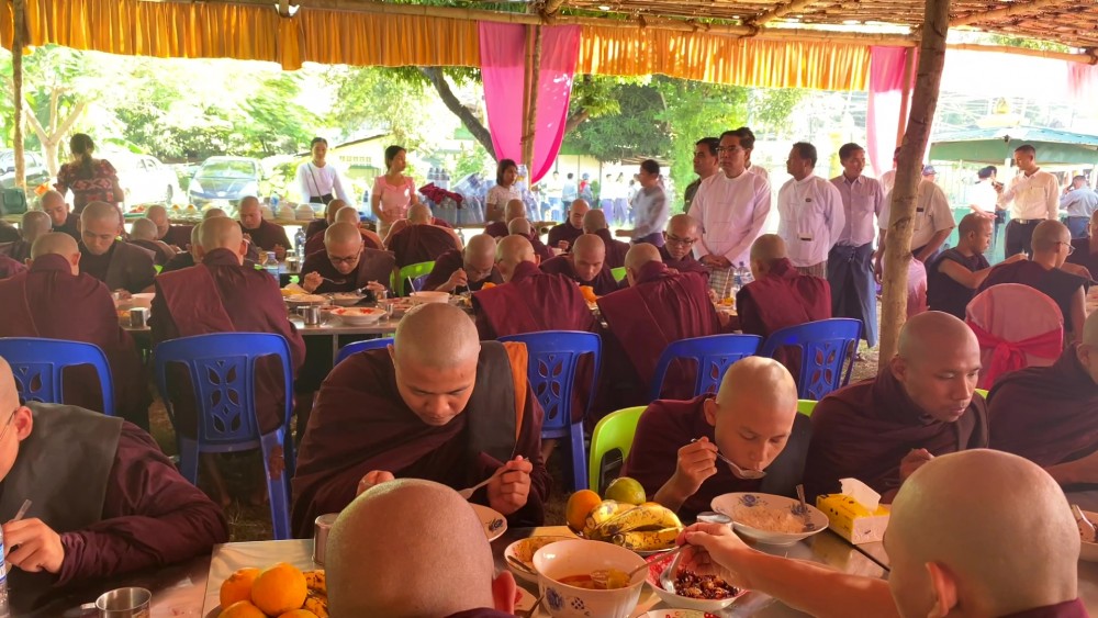 Bago Region Government offered ‘Soon’ (day meal) to members of the Sangha and nuns sitting for the 37th Thamanaykyaw Linkara exam at the Voice of Buddha Dhamma Beikman and ShweKyaungTaw Kyaukpandaung Community Hall in Bago Township.