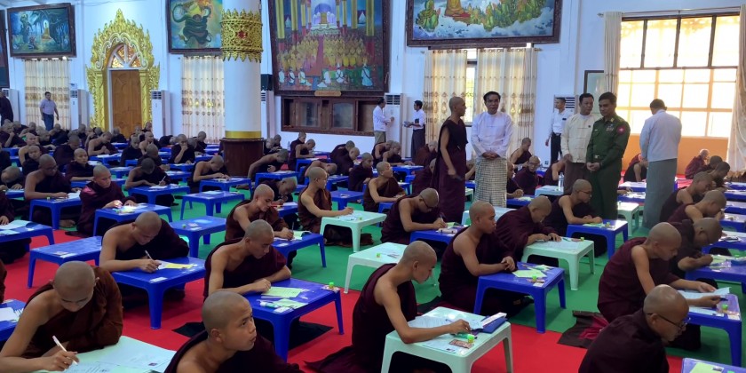 Chief Minister U Myo Swe Win and officials attended this soon offering ceremony before viewing the exam process. It’s reported that 1,640 members of the Sangha and nuns from regions and states registered to sit for the 37th Thamanaykyaw Linkara exam in Bago from 27 to 29 of December.