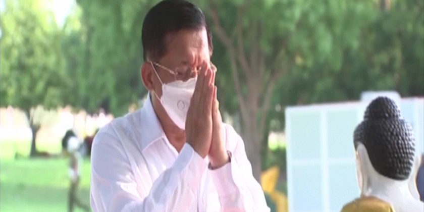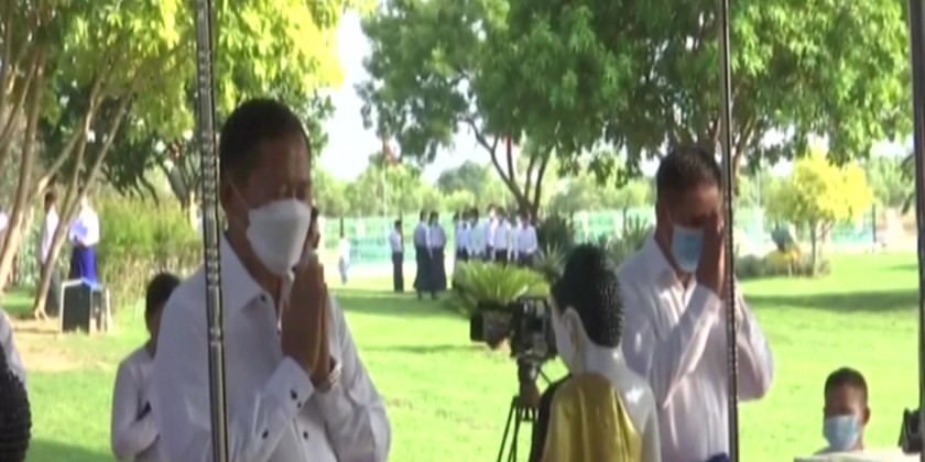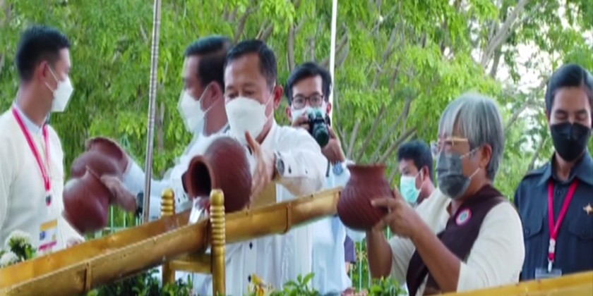 At the Ceremony, Chairman of the State Administration Council (SAC) Prime Minister Senior General Min Aung Hlaing, SAC members and wives poured water at respective Maha Bodhi banyan trees and sprinkled scented water on these trees.