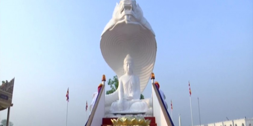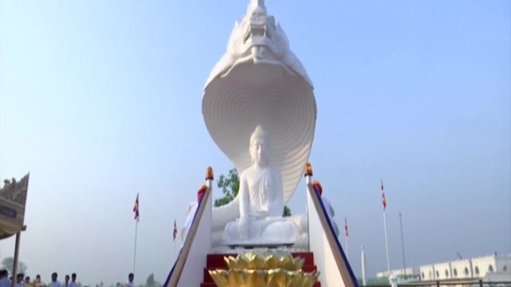 It was followed by reciting of religious Gadhas by the congregation. At the auscipious time, the Prime Minister pressed the button to convey the Buddha Statue. After that, the Prime Minister and party offered scented water to Mucalinda Buddha Statue.