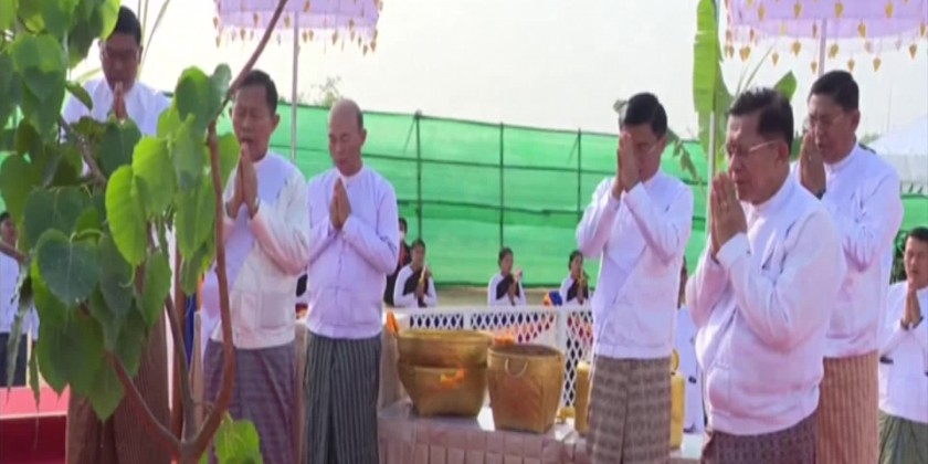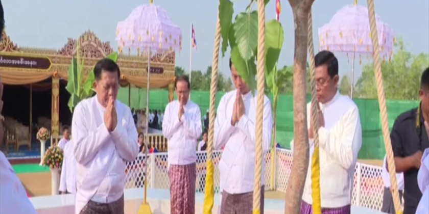 At the auscipious time, the Prime Minister planted Maha Bodhi tree and poured holy water and scented water. The ceremony concluded after sharing merits gained. After that, the Prime Minister and party toured round the Maha Bodhi tree in a clockwise position, and showered gold and silver rains to mark the successful accomplishment of hte ceremony.