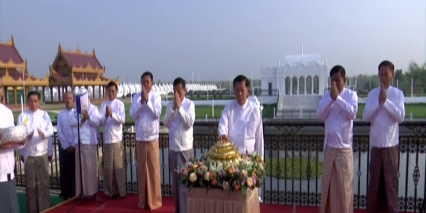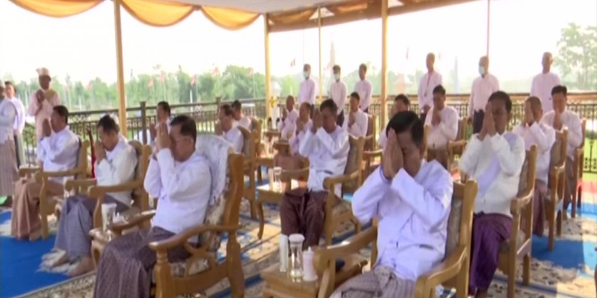 A ceremony to convey Buddha Statue to Mucalinda Dragon Pagoda Shrine in the compound of Maravijaya Buddha Park in Deckkhina Thiri Township in Nay Pyi Taw on Wednesday. Chairman of the State Administation Council Prime Minister Senior General Min Aung Hlaing attended the ceremony which commenced with the recitation of “Namo Tassa” three times.