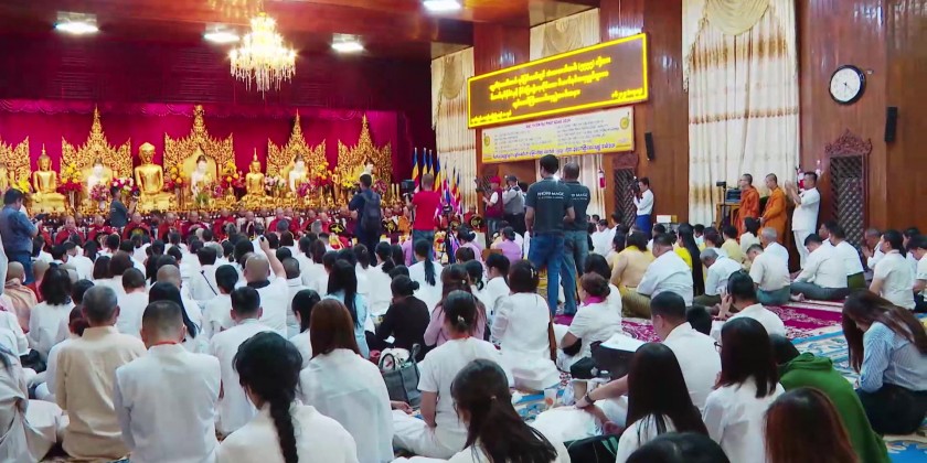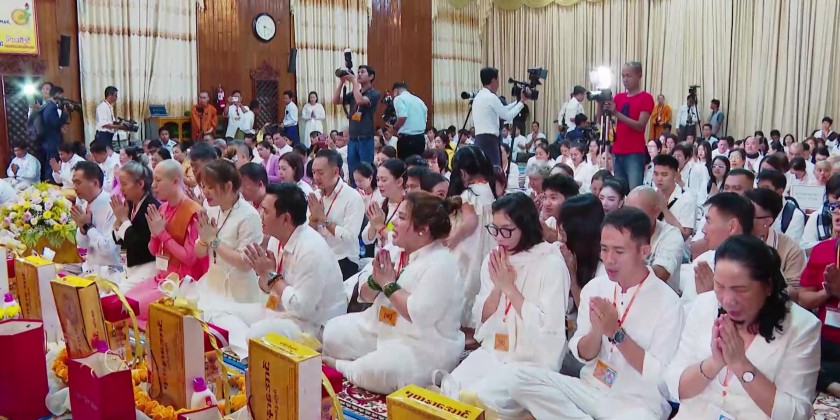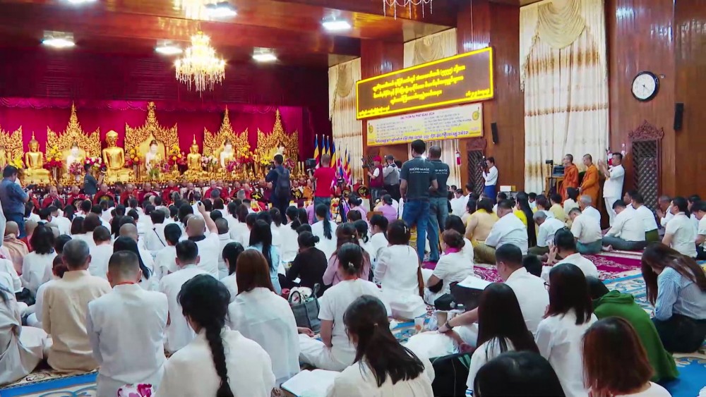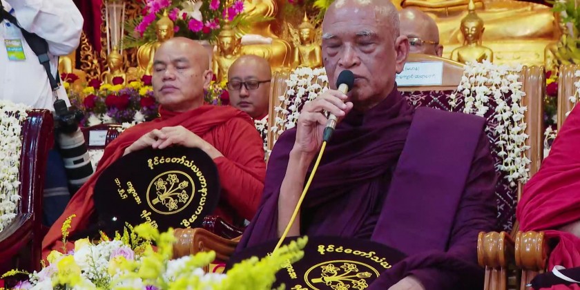 The congregation took Five Precepts from the Chairman of State Sangha Maha Nayaka Committee Patron Sayadaw of Thalyin Min Kyaung Pahtamapyan Sarthintaikkyi, and listened to the sermons, recited by the Sayadaws and members of the Sangha.
