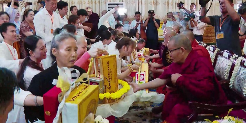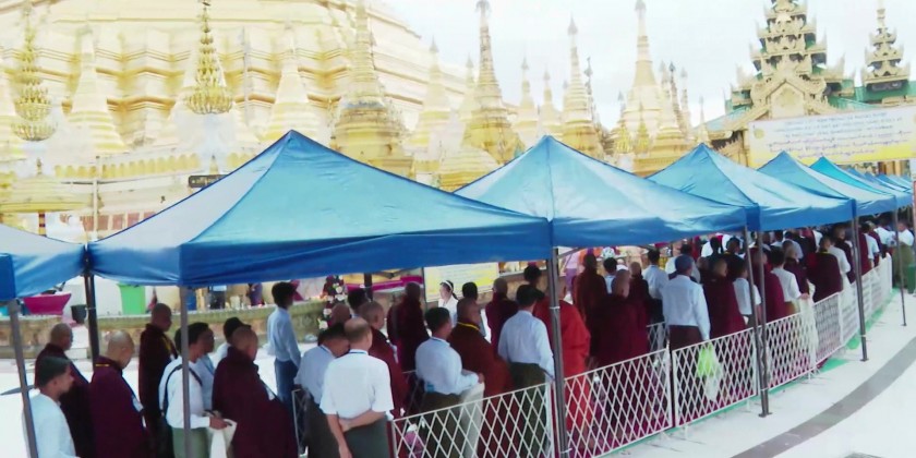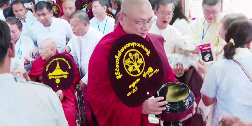 After the ceremony, Chief Minister U Soe Thein and wife, Regional Ministers and their wives, members of Board of Trustees and well-wishers, as well as the donors from Viet Nam donated rice to the 5,555 members of the Sangha.