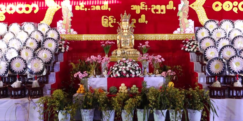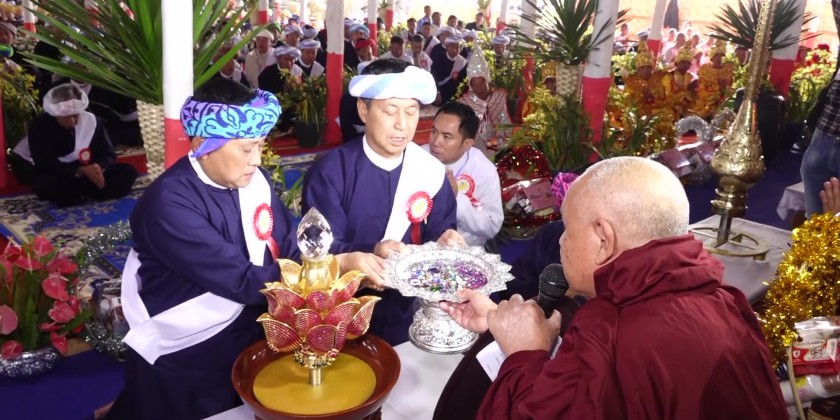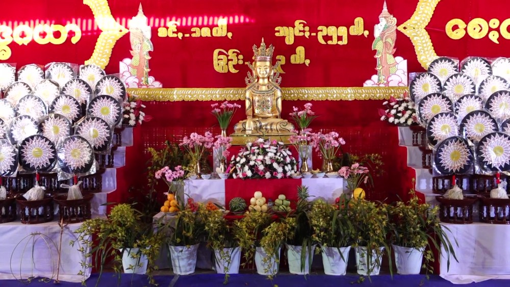 A religious ceremony to hoist the Diamond Orb and Golden Umbrella atop the Bo Panta Hill Maha Wuntha Bodh Gaya Pagoda took place on Saturday morning. This ceremony in Kyauk Ta Lone Gyi Township in southern Shan State began with chanting Namotassa, taking 9 precepts and reciting sermons.