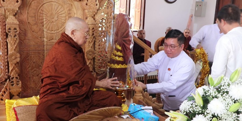 Mon State Chief Minister U Aung Kyi Thein and many other officials participated in the ceremony to offer Kathina robe at the Dhamma Vihari Monastery in Mawlamyaing Township on Monday. This religious ceremony began with paying respects and offering the Kathina robe and offertories to members of the Sangha.