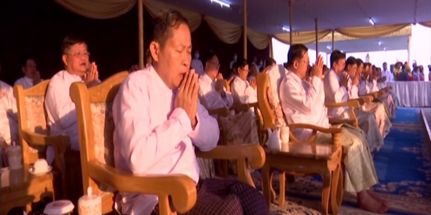 The ceremony was graced by members of the Sangha led by State Ovada Cariya Sayadaw of Maha Thiha Nada Monastery in Tatkone Bhaddanta Aciṇṇa, Sayadaw of Inntha East Monastery in Lewe Bhanddata Pandita, Region Ovada Cariya WaeGyi Monastery of Pobbathiri Township Bhanddata Addiccavamsa and Ovada Cariya Sayadaw for construction of Mara Vijaya Buddha Image, Patron of Pyinmana Pali University Mingala Zayyon Monastery Bhaddanta Vimalabuddhi, together with the attendance of Chairman of the State Administration Council Prime Minister Senior General Min Aung Hlaing, Vice Chairman of the Council, Deputy Prime Minister Vice Senior General Soe Win, the Secretary, Joint Secretary and members of the council, the Union Ministers, Nay Pyi Taw Council Chairman, Senior Military Officers from the Commander-in-Chief Office, Nay Pyi Taw Command Commander, invited guests and members of Wut Associations.