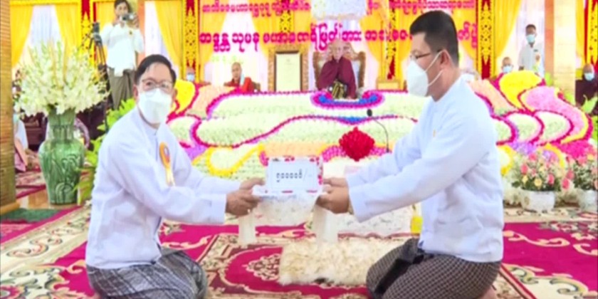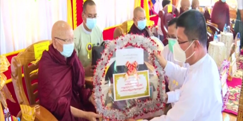 This title conferring ceremony at the Ceremony in KyonMaNgae Township on Sunday afternoon was attended by member of the State Administration Council (SAC) Mahn Nyein Maung, Ayeyawaddy Region Chief Minister U Tin Maung Win and many other officials. The ceremony also included offertories donation to members of the Sangha and came to an end by sharing the merits gained.