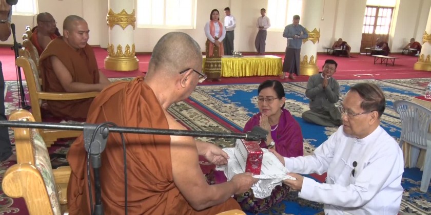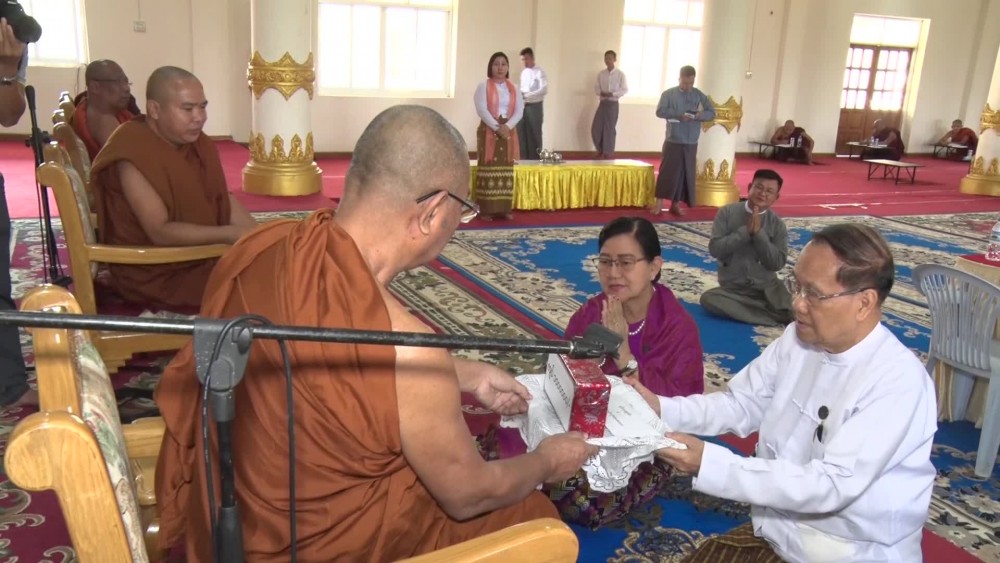 Likewise, the Deputy Minister and party donated 500,000 kyats for sanghas and nuns who are sitting the Government Dhamasriya exam at the IntaingTha Monastery in Nay Pyi Taw Lewe Township. A total of 269 sanghas submitted applications and about 234 sanghas and monks sat the exam at the exam center of Pyinmana Township.