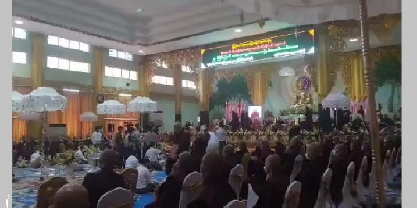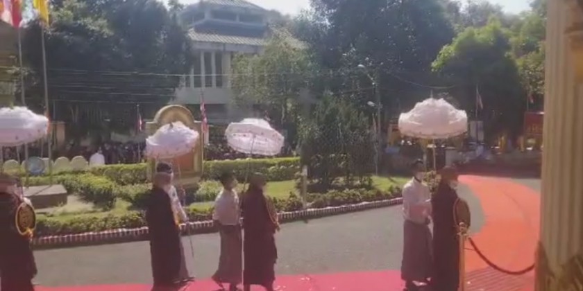 27th Graduation Ceremony of the State Pariyatti Sasana University (Yangon/Mandalay) was held in Yangon on Friday. Union Minister for Religious Affairs and Culture U Ko Ko and party observed five precepts and took the Ovadakahta given by the Sayadaw.