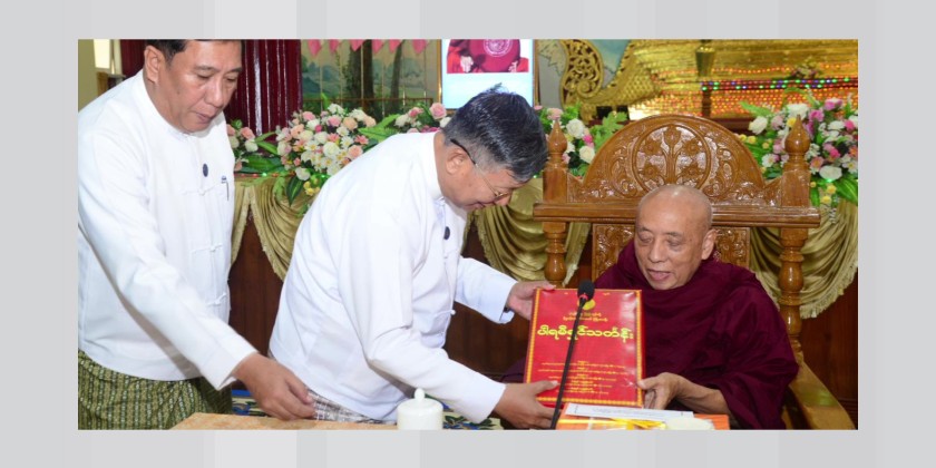 Then, the Union Minister expressed his appreciations for the guidance and efforts of the State Sangha Maha Nayaka Committee and supplicated religious matters. He also clarified the translation process of Tri Pitaka Treatises into English language, preservation of pagodas and religious edifices as well as the installation of Pagoda Digital Directories at the pagodas across regions and states.