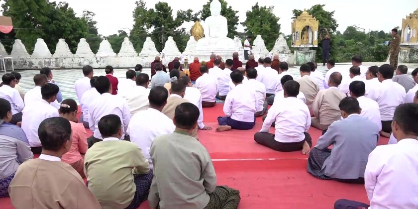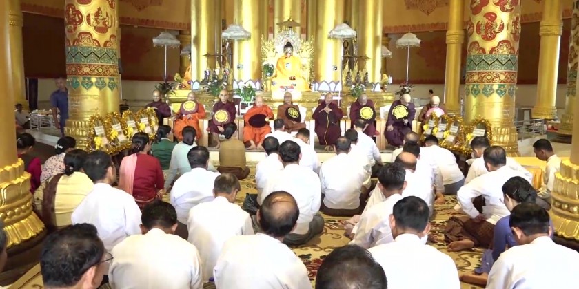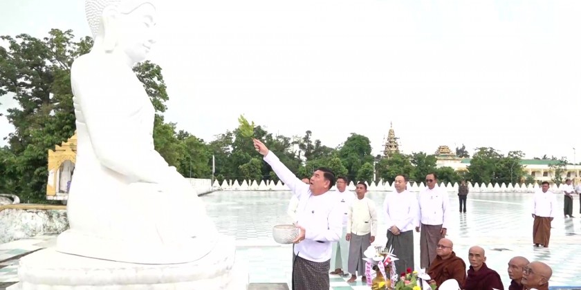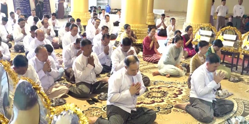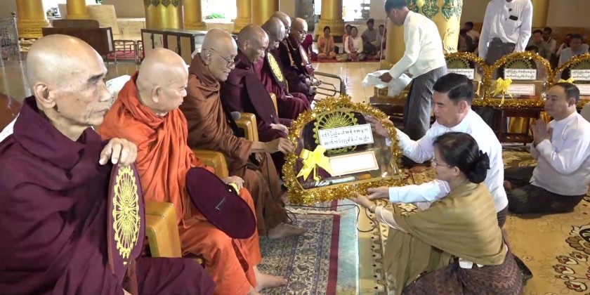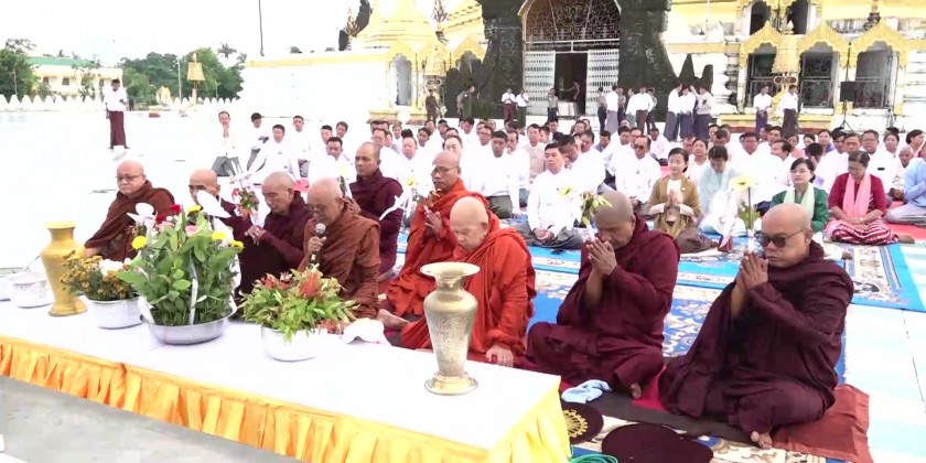 Then, the second part of the ceremony continued with the three-time recitation of 'Namotassa' by the Sayadaw and members of the Sangha and the congregation led by the Chief Minister.