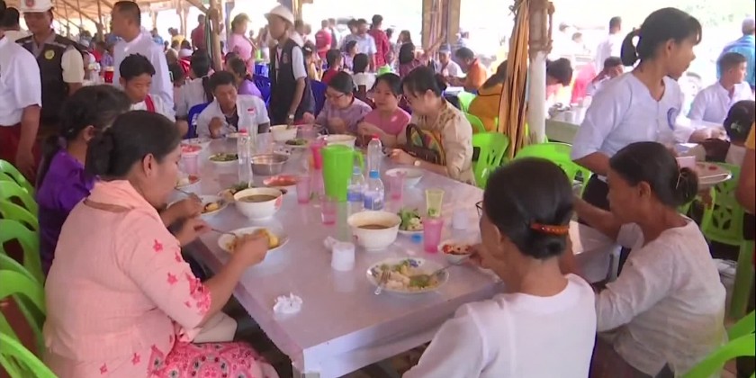 After the ceremony, the Prime Minister and entourage offered day meal to the Sangha and served the guests with lunch.